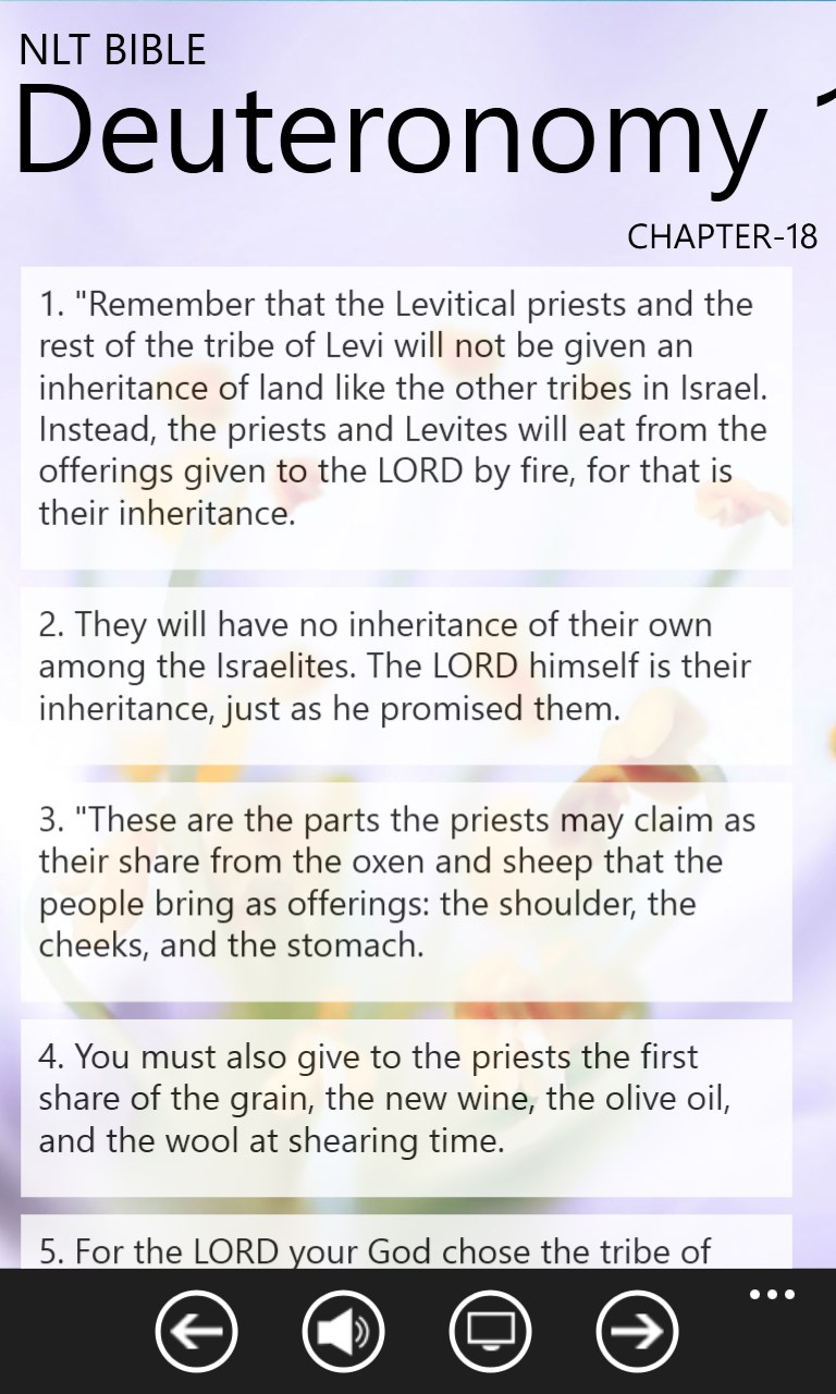 You must listen to him. Remember that the Levitical prieststhat is the whole of the tribe of Leviwill receive no allotment of land among the other tribes in Israel. Easily hear Scripture read as you study the Bible.